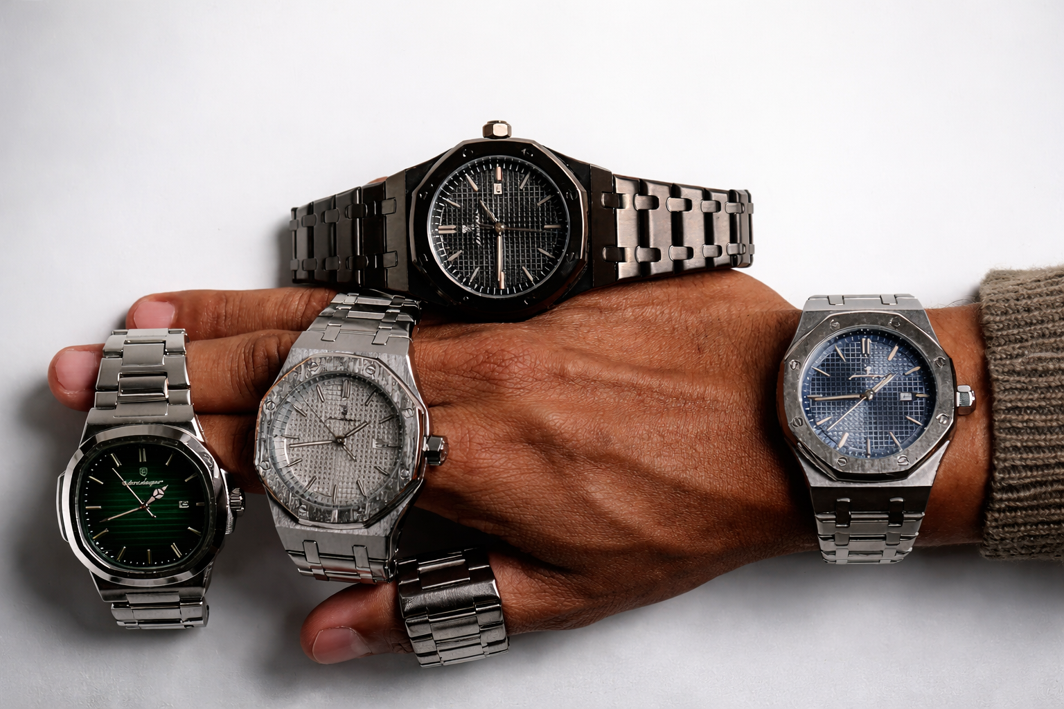 Our watches are made from high-quality stainless steel, durable mineral glass, and premium leather or silicone straps. We ensure both style and durability.